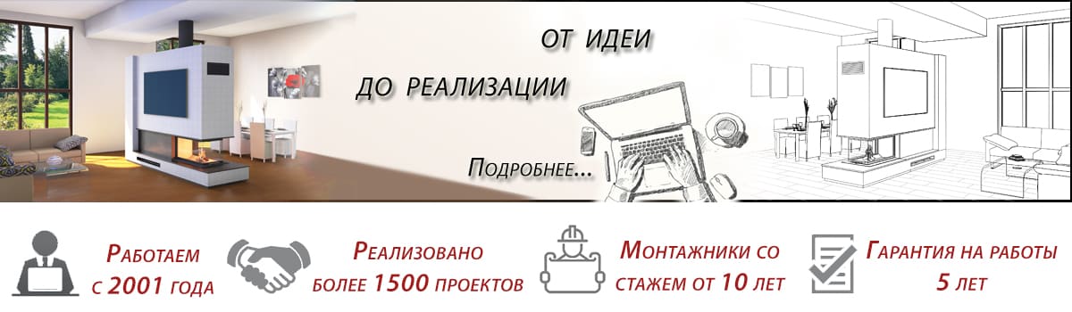 Доверьтесь высококвалифицированным специалистам нашей компании, которые в 2001 году начинали свой путь с монтажей каминов, печей и дымоходов. На протяжении этого времени, мы совершенствуем свое мастерство проходя обучение, как в России, так и в Европе. Свой штат монтажных бригад позволяет нам качественно, надежно и в срок выполнять свою работу с расширенной гарантией. Предоставление полного комплекса услуг в одной компании позволяет Вам сэкономить время и деньги, что очень удобно.